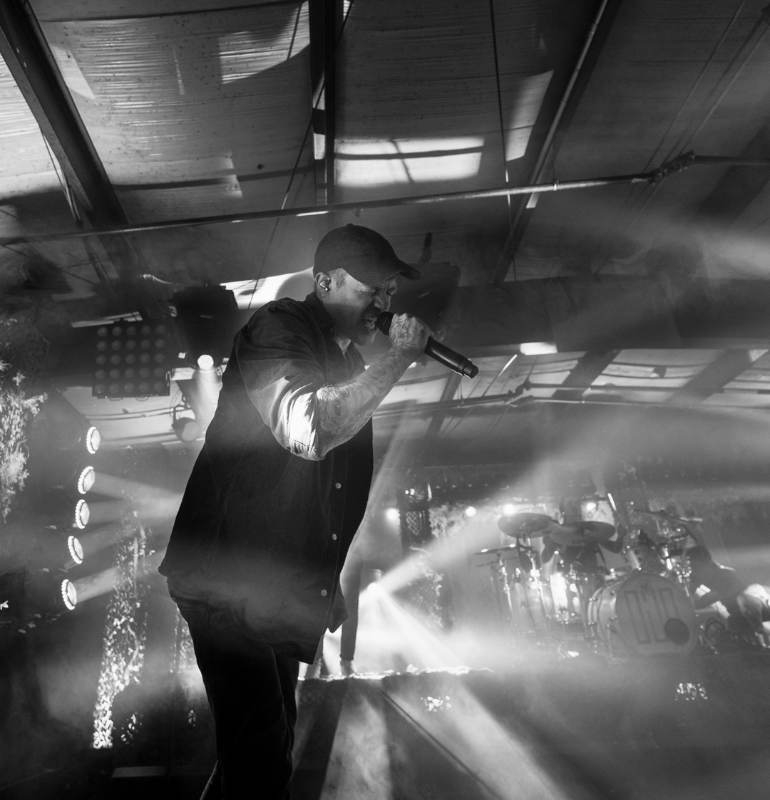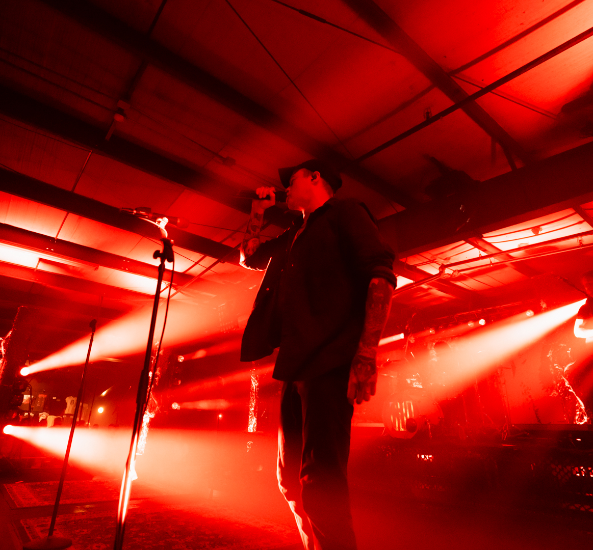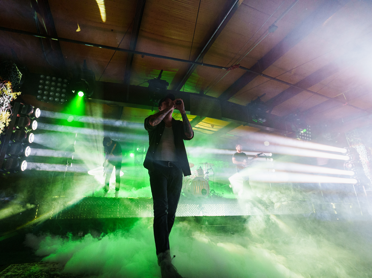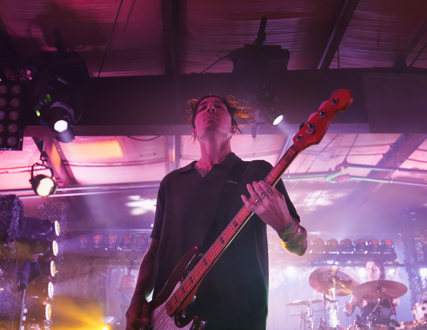 As The Plot In You hits the stage, a red glow spills across the venue. In the background, an old-timey radio is flipping channels, and suddenly — a weather alert blares. Thunder crashes. Lightning strikes. The radio dies mid-emergency alert. Dramatic much? Oh, you bet. Drums kick in, the band bursts onstage, and the show opens with “Spare Me.” Then we’re lulled into “Divide,” and just like that, the room is theirs.