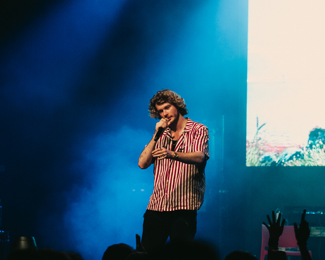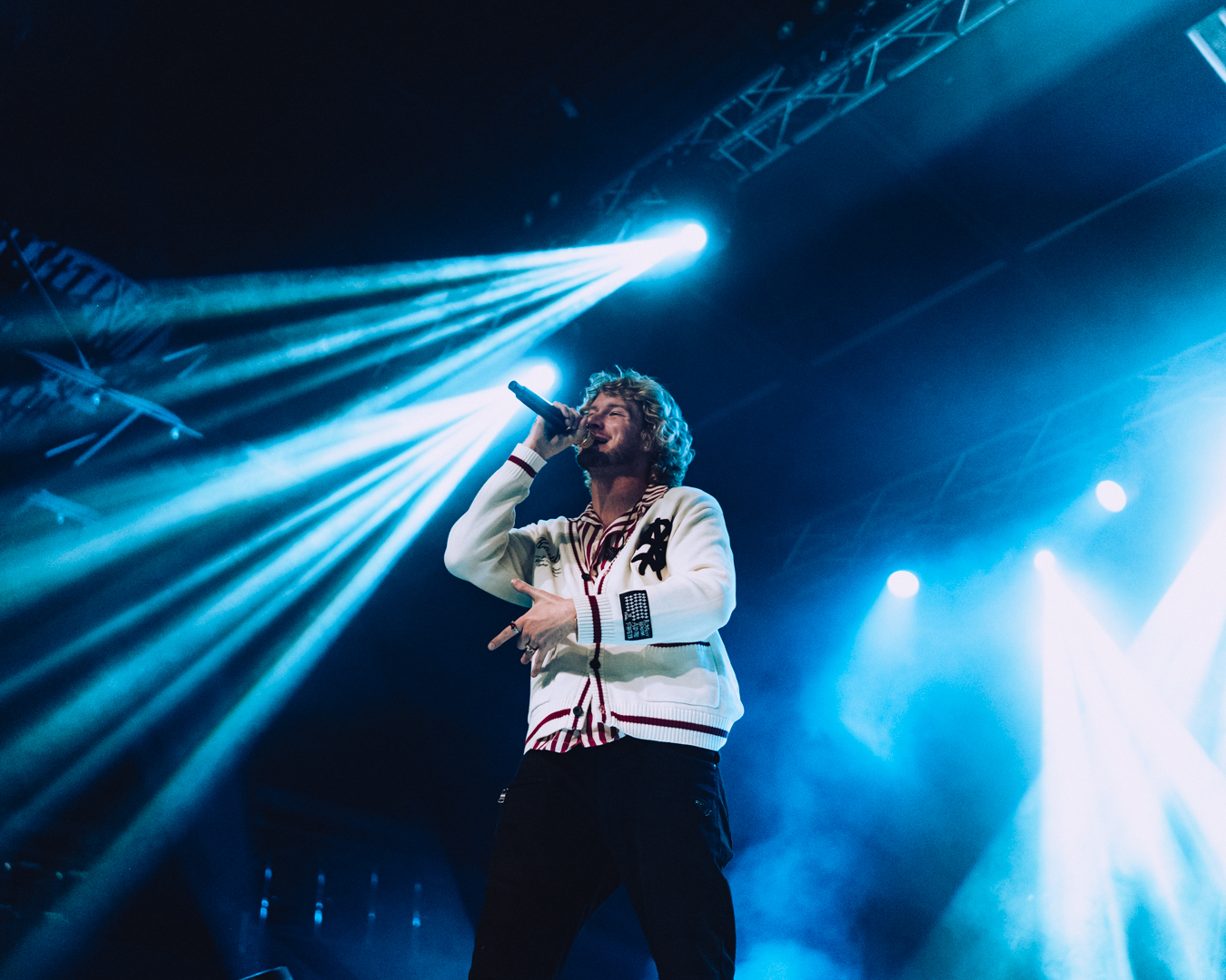 But Gravy wasn’t just performing; he was hosting a party. Between tracks he cracked jokes, flirted with the crowd, and handed out roses like some kind of smooth-talking game show host from the ‘70s. He made every person in that room feel like they were part of the chaos — from the front-row moms blushing at his one-liners to the college kids who looked like they’d been pre-gaming since sunrise.