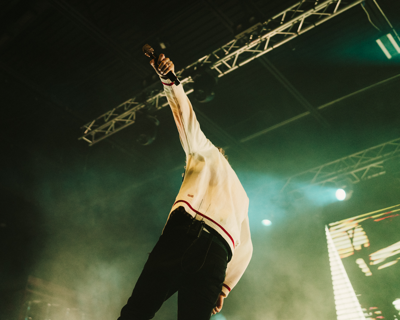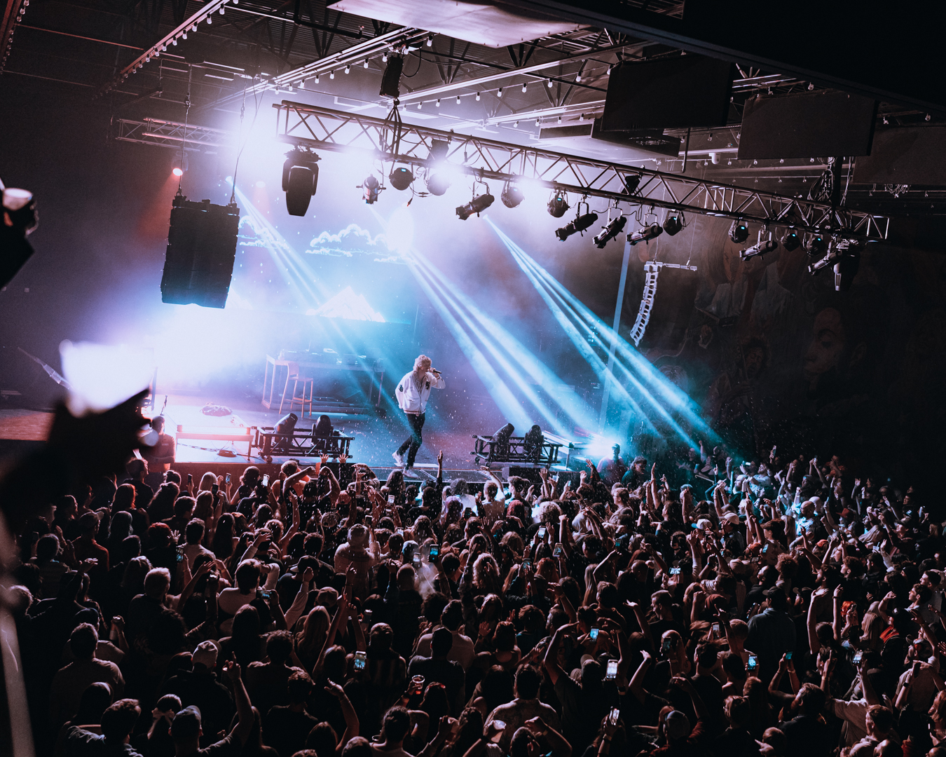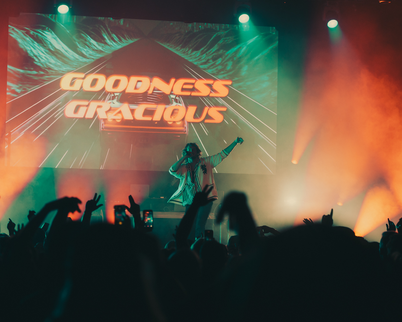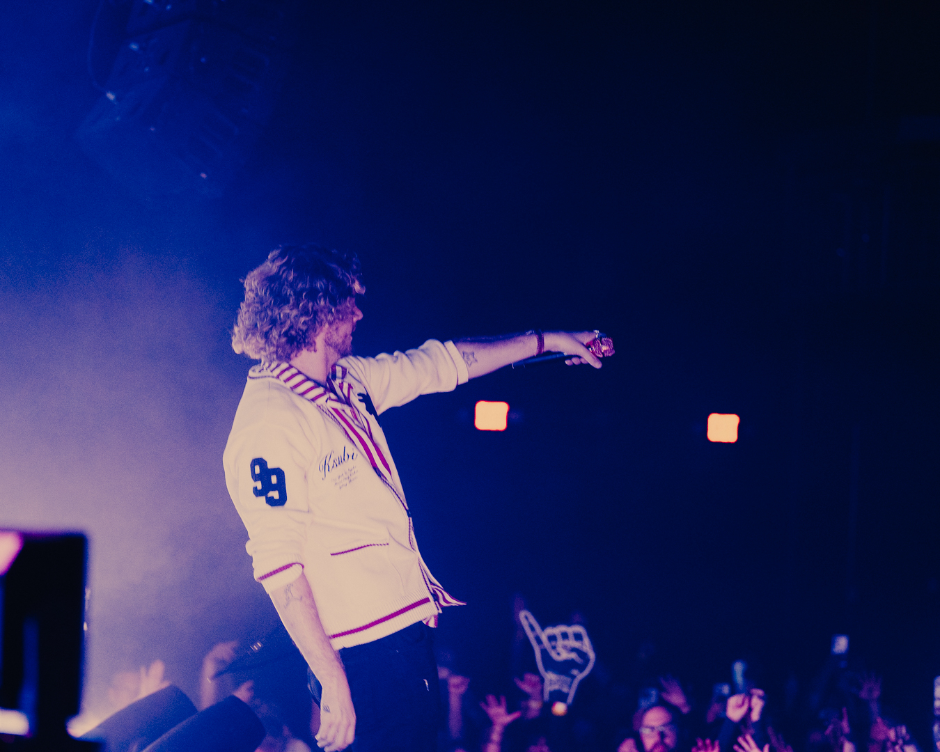 He dove straight into his set, ripping through tracks from his last two albums — a blur of high-energy, fast-paced beats that made it impossible to stand still. The man’s flow was like a machine gun: loud, messy, and somehow perfectly timed. Every beat drop sent shockwaves through the room, the kind that punch you right in the chest and make you yell even if you don’t know the words.