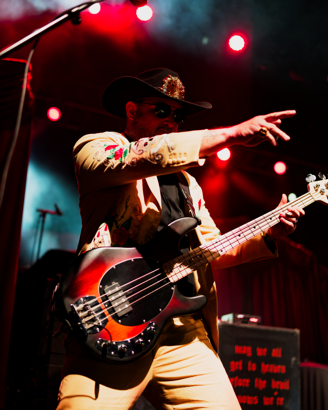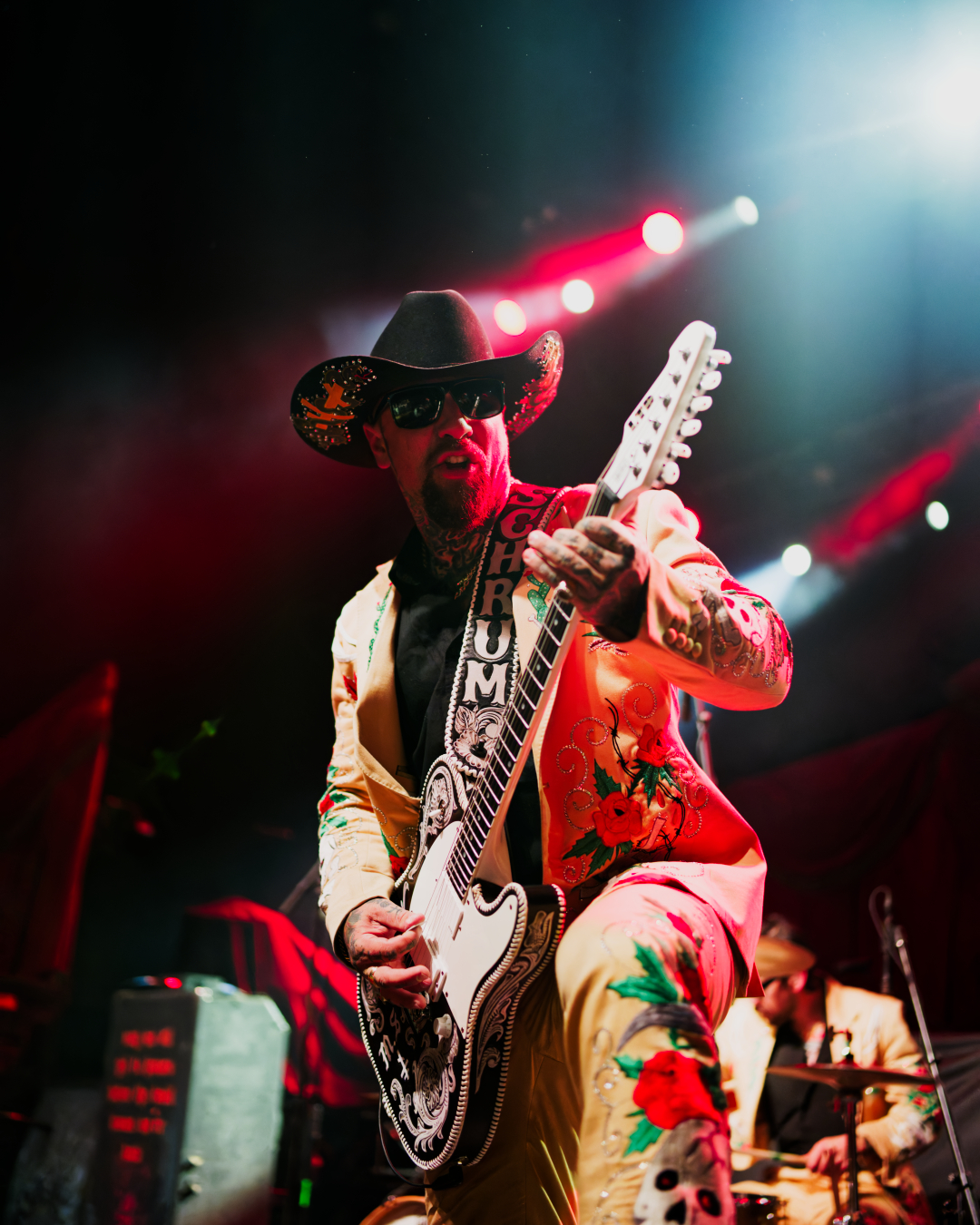 Lights dimmed and SpiritWorld exploded onto the stage. Sequins. Embroidery. Cowboy hats. Vegas rodeo demon chic. My brain tried to process this while also processing, “Wait, this is metal? This is happening?”