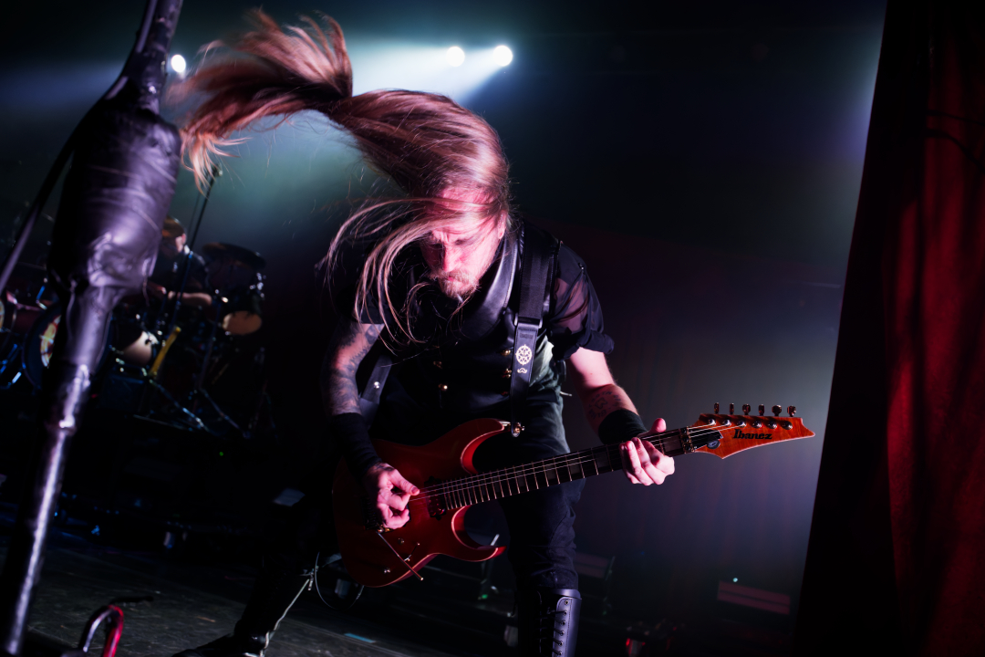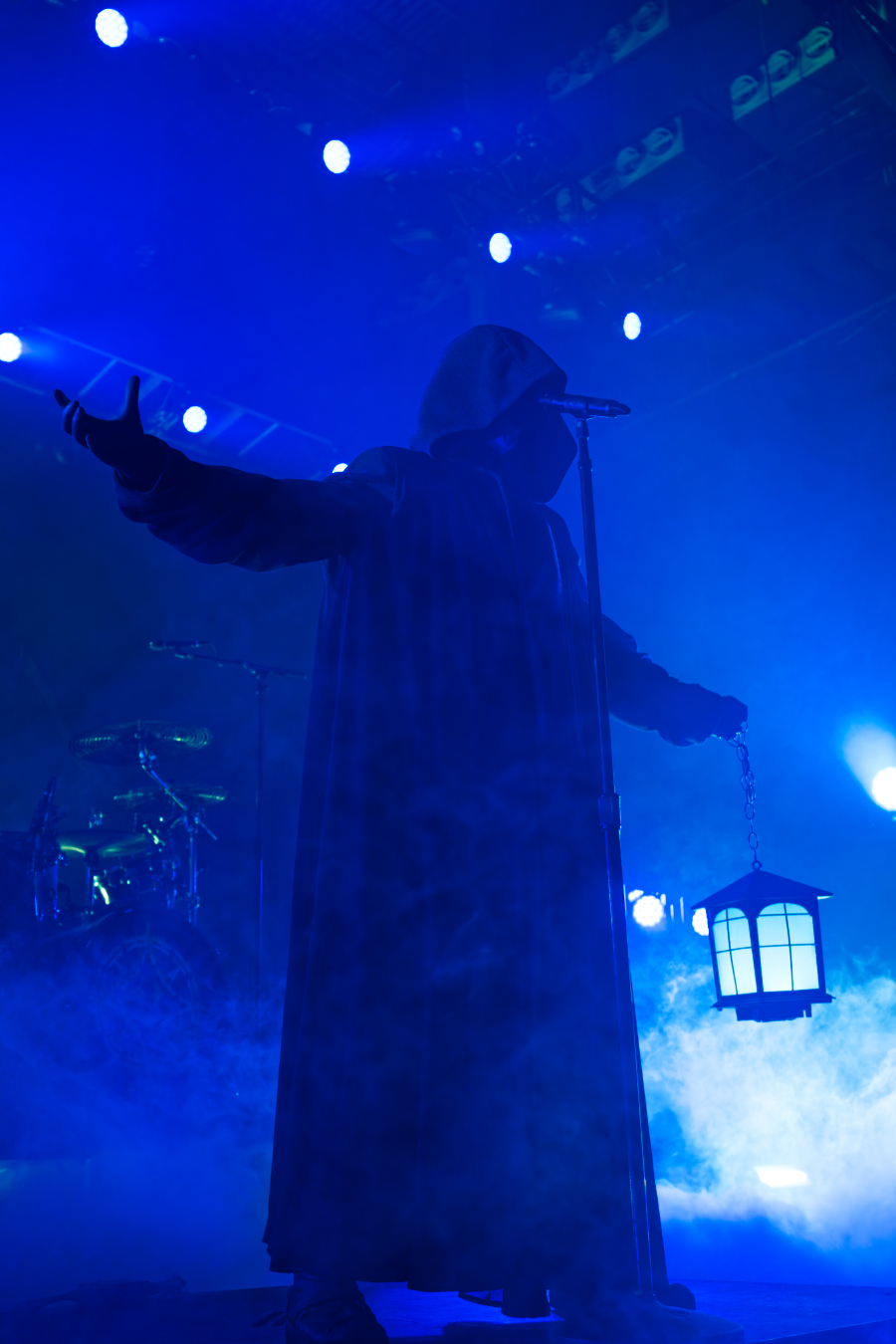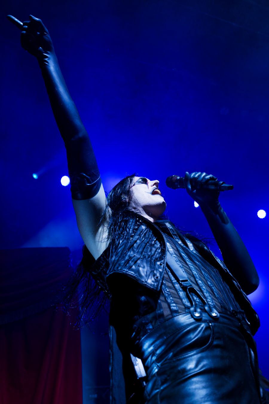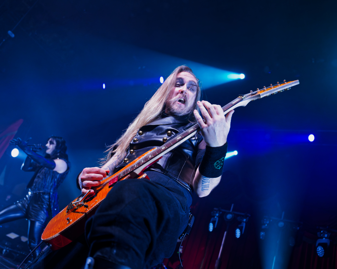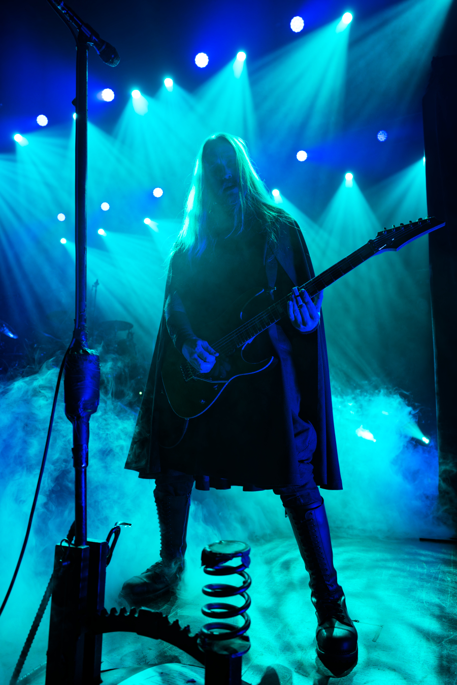 They didn’t walk onstage. They arrived, the stage drifted them center as if they themselves were floating. Shadows moved through the fog. Angles sharp enough to cut glass. And then Johannes stepped into the light. BOOM. Ringmaster energy radiating from every pore. Hair perfect, makeup immaculate, presence so commanding it could herd a thousand screaming metalheads.