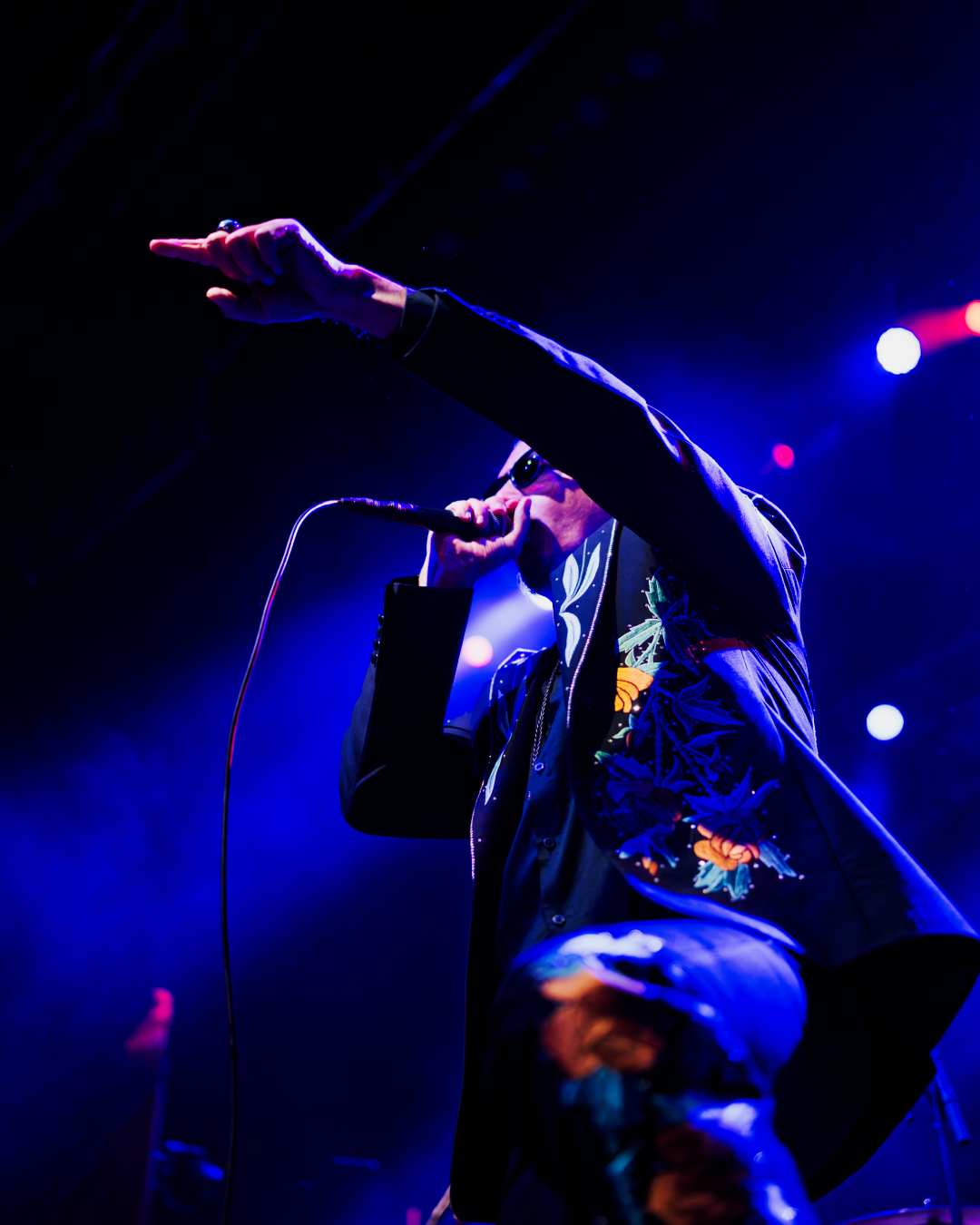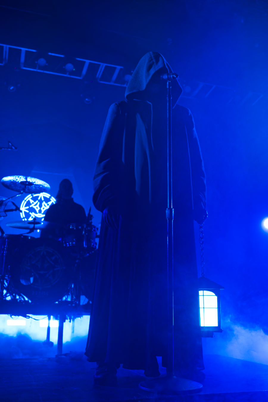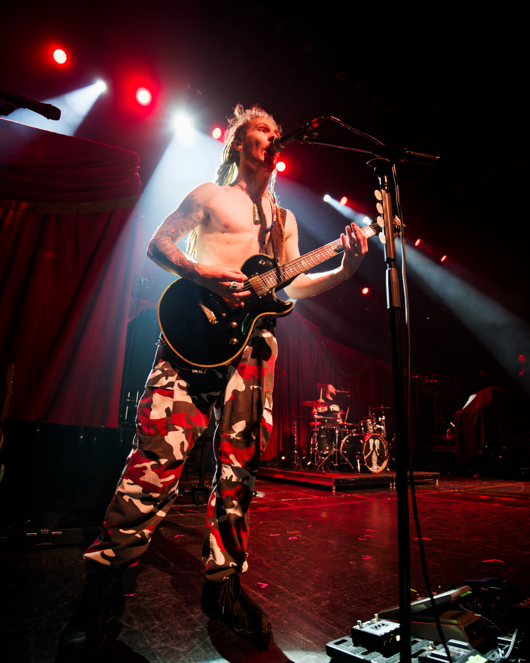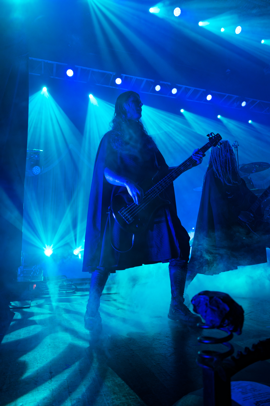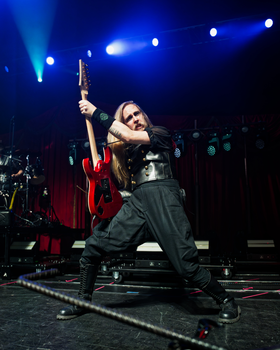 They didn’t walk onstage. They arrived, the stage drifted them center as if they themselves were floating. Shadows moved through the fog. Angles sharp enough to cut glass. And then Johannes stepped into the light. BOOM. Ringmaster energy radiating from every pore. Hair perfect, makeup immaculate, presence so commanding it could herd a thousand screaming metalheads.
