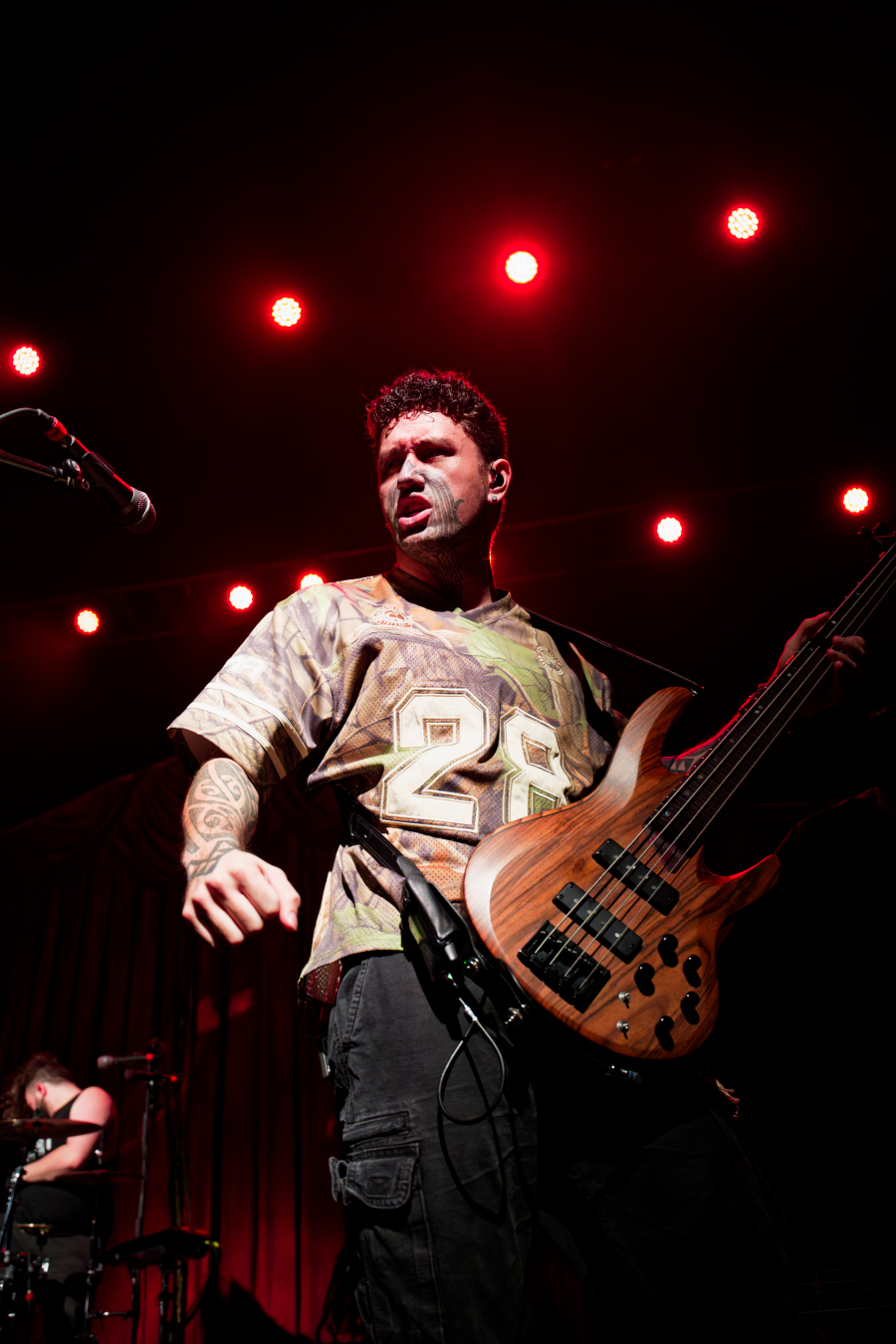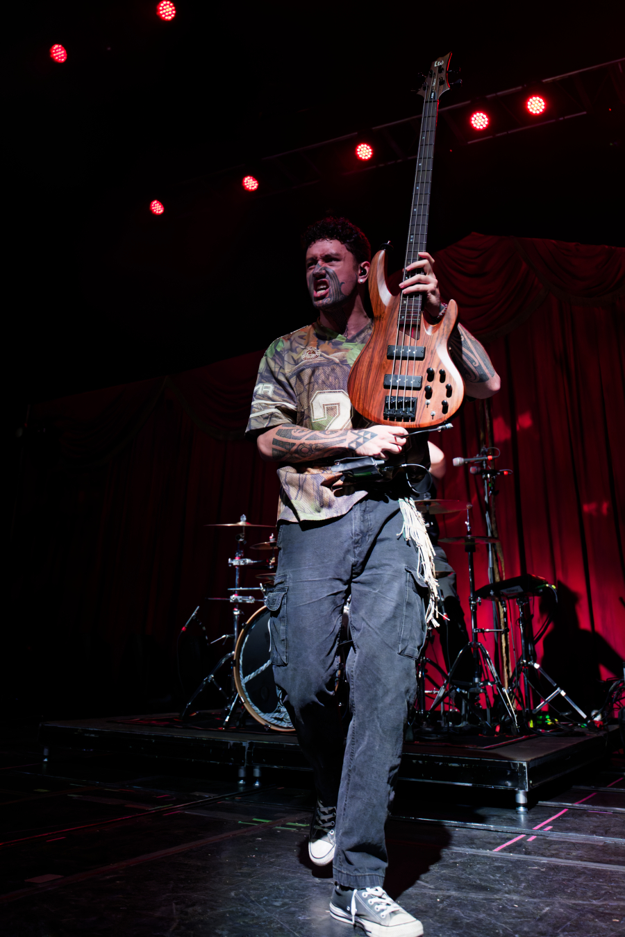 The lights dimmed darker. The room throbbed with anticipation. Alien Weaponry didn’t walk on stage. They arrived, performing Haka onstage to open the set. Drums thundered, riffs cut like knives, and suddenly, the pit turned into a living, thrashing organism.