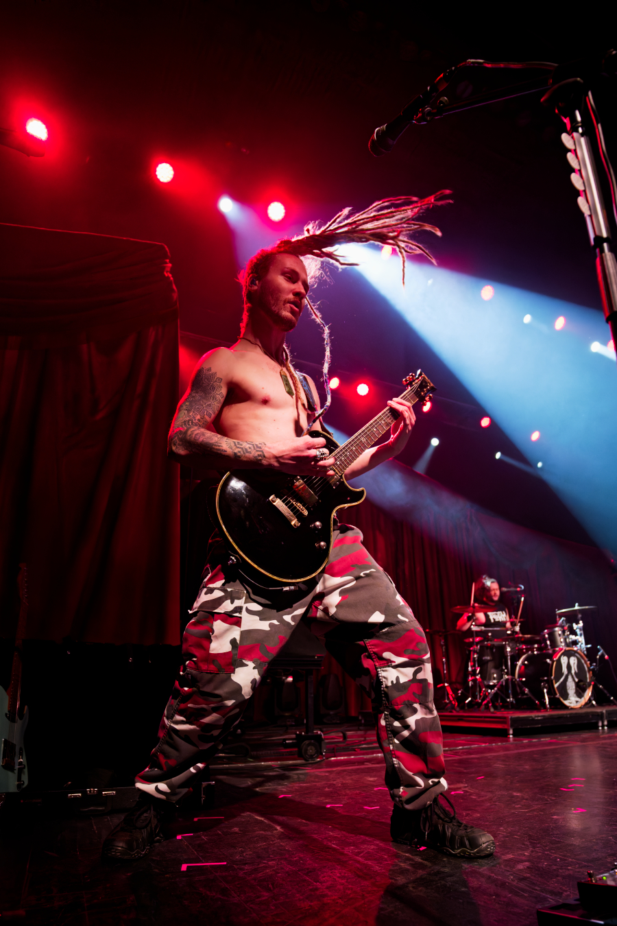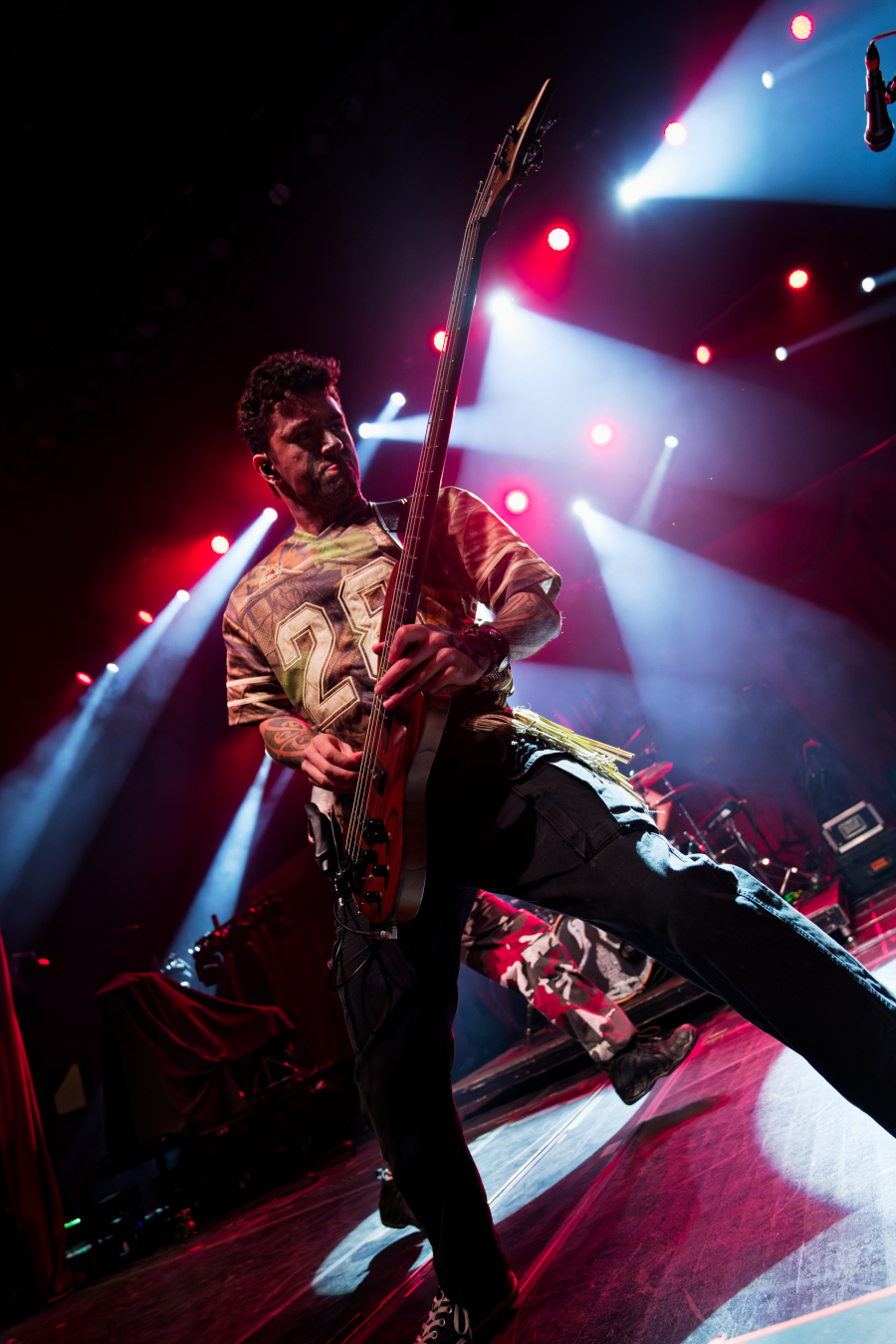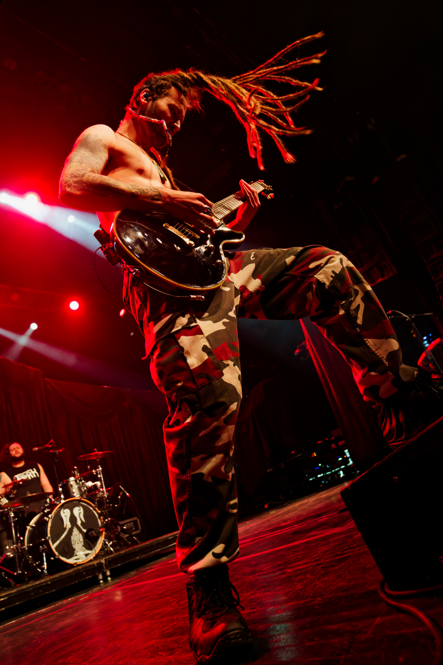 The visuals were insane: blood-red strobes, white flashes freezing the band mid-motion, fog crawling along the stage floor like they’d clawed their way out of the underworld. The pit became a hurricane of sweat, hair, and adrenaline. People were spinning, crowd-surfing, screaming lyrics, and somehow staying perfectly chaotic in sync.