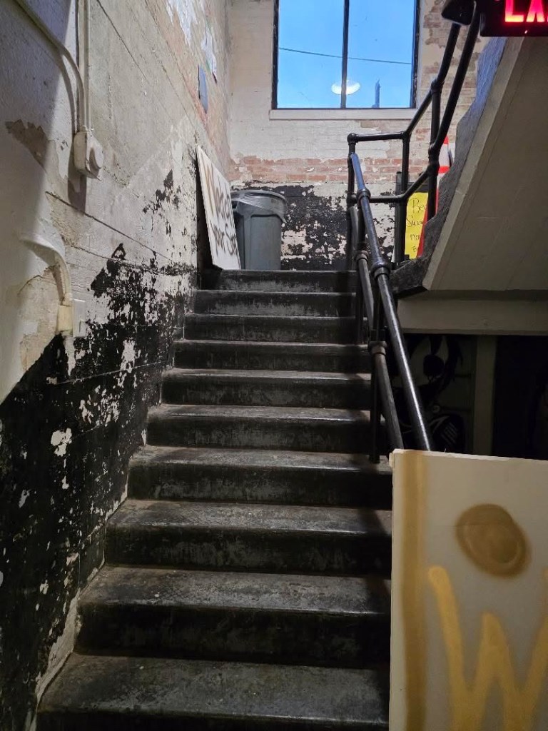Day one was held in a 100 year old cavernous sub-level basement called Odins House of Sound. Finding the place was a bit difficult as what sat at the GPS coordinates just appeared to be a large construction zone where everywhere looked like somewhere I was not supposed to be. I parked and saw a metal head making their way down the street and decided to casually follow them since I had no idea what to do other than fret and watch my hair progressively get fuzzier. At the end of the totally not awkward walk was a group of decked out OÜGH dudes and the drummer for Inter Arma standing around a dumpster and nondescript metal door. I discovered I was the first non-band/staff member there and became mortally embarrassed. I decided to open the door to see what would happen.