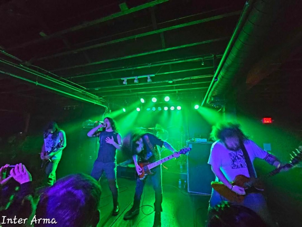 Next Daeva was Daeva, which ruled. I did some filling and refilling of a PBR can in the bathroom sink for hangover prevention, apple eating and strategic pissing to their set of ripping black thrash. I’m going to try not to be biased when I talk about the next band since they’re my favorite band of all time and if I ever heard anything better it would kill me instantly. As Inter Arma, the best band in the world with the most talented musicians to ever exist set up, a new friend told me she really wished they would play Citadel because its her favorite song by them… and then they opened with Citadel! There was some squealing and jumping around but in a stoic and kvlt fashion. The 6.25 song set was New Heaven heavy with some oldies and Goldies thrown in. Mike’s vocals had a slight Artificial Brain tinge to them in spots which I thought was very cool. I cannot wait to hear the new Artificial Brain album with him on vocals, gawd thats gonna be so good. Saw Mike Derks from Gwar watching Inter Arma‘s set from the side stage too which was neat.