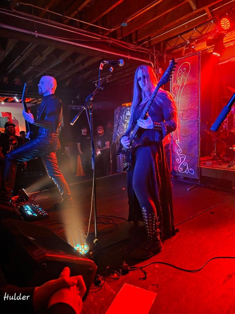 One of Nine were amazing, I knew they would be when I first read their interview in Decibel and the main guy was speaking like he was running a renaissance fair. They take the Tolkien influence very seriously and I love that. I feel like people don’t wear chainmail and bring swords onstage enough anymore. Their music is top-tier and their aesthetic is a work of art, all their merch is gorgeous too. After One of Nine I was so happy to finally see Hulder. Hulder and Krieg were huge highlights for me. I have seen well over 600 bands and I dont often get to see bands I haven’t seen before when it comes to bands I’ve been into a long time. Hulder‘s bassists hair slapped me in the face probably about 12 times during their set which I thought was funny but also impressive considering I had to have been at least 5 feet away.