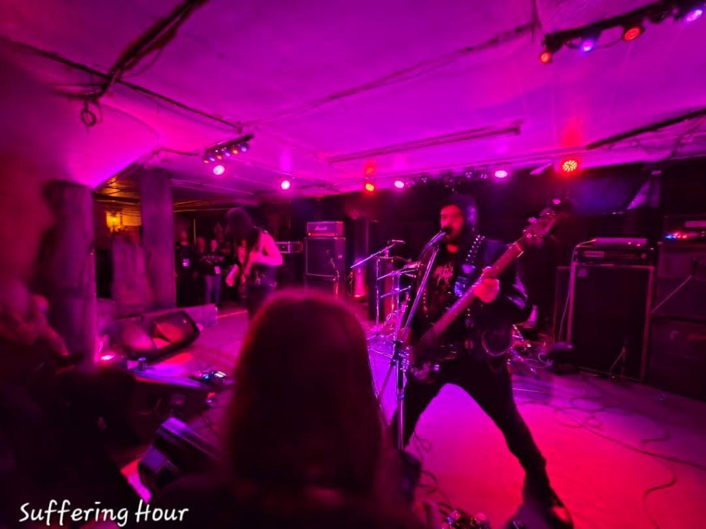 Night 3 was back at Odins, OÜGHs abound every band was sick and TRVE. I spent the evening enjoying the house show vibes, talking to new and old friends, going up the stairs to see who was playing, chugging free water, going down the stairs to quest for beer, checking the merch area every 10 minutes for the Woe merch guy (I really wanted one of those /15 tapes! ), getting annoyed at whoever was burning sage, going out to my car to speed run a 6 hour old bowl of macaroni from Cobra Cabana with questionable chop sticks, etc. My favorite bands of the evening were the colossally intimidating Plaguefever, Cemetery Piss, Demiser, Woe and Suffering Hour. It had been a rainy day but the ceilings did not start to leak until Cemetery Piss played, that can’t have been a coincidence. A friend and I were tall and majestic has we stood on an elevated part of the wall to watch Demiser terrorize the crowd with their onslaught of blackened thrash. Suffering Hour fuckin’ RULED. They have such an interesting guitar tone and a lot of really cool riffs. Their song Strongholds of Awakening has one of my favorite riffs of all time and their new EP is incredible. Also, it had been a long time since I had gotten any big bruises at a show and during their set I got slammed into a speaker so hard I have a big tiger stripe across my thigh, so that was pretty satisfying.